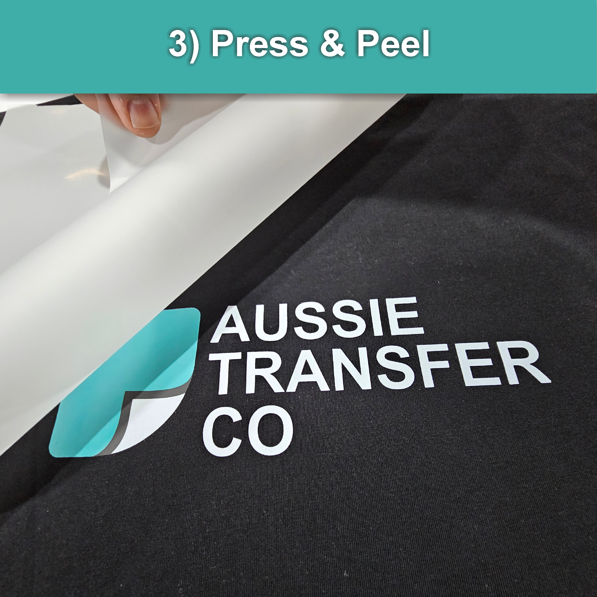 At Aussie Transfer Co, when we talk about “transfers,” we’re talking about your design printed onto a special film, ready to be heat pressed straight onto a garment.